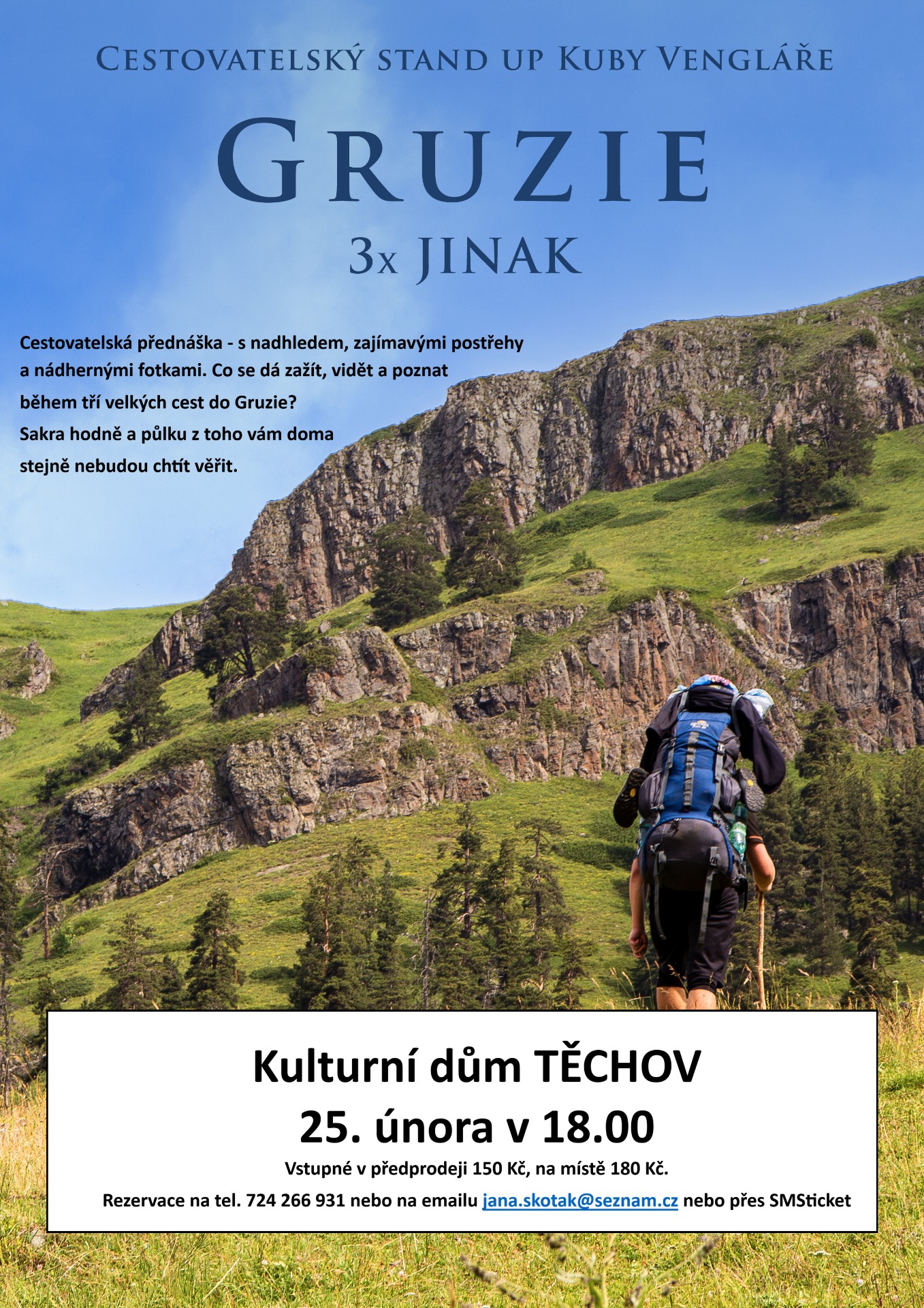 Rezervace na tel. 724 266 931 nebo na emailu jana.skotak@seznam.cz, předprodej v Hospůdce Na Točně na Těchově nebo přes SMS Ticket